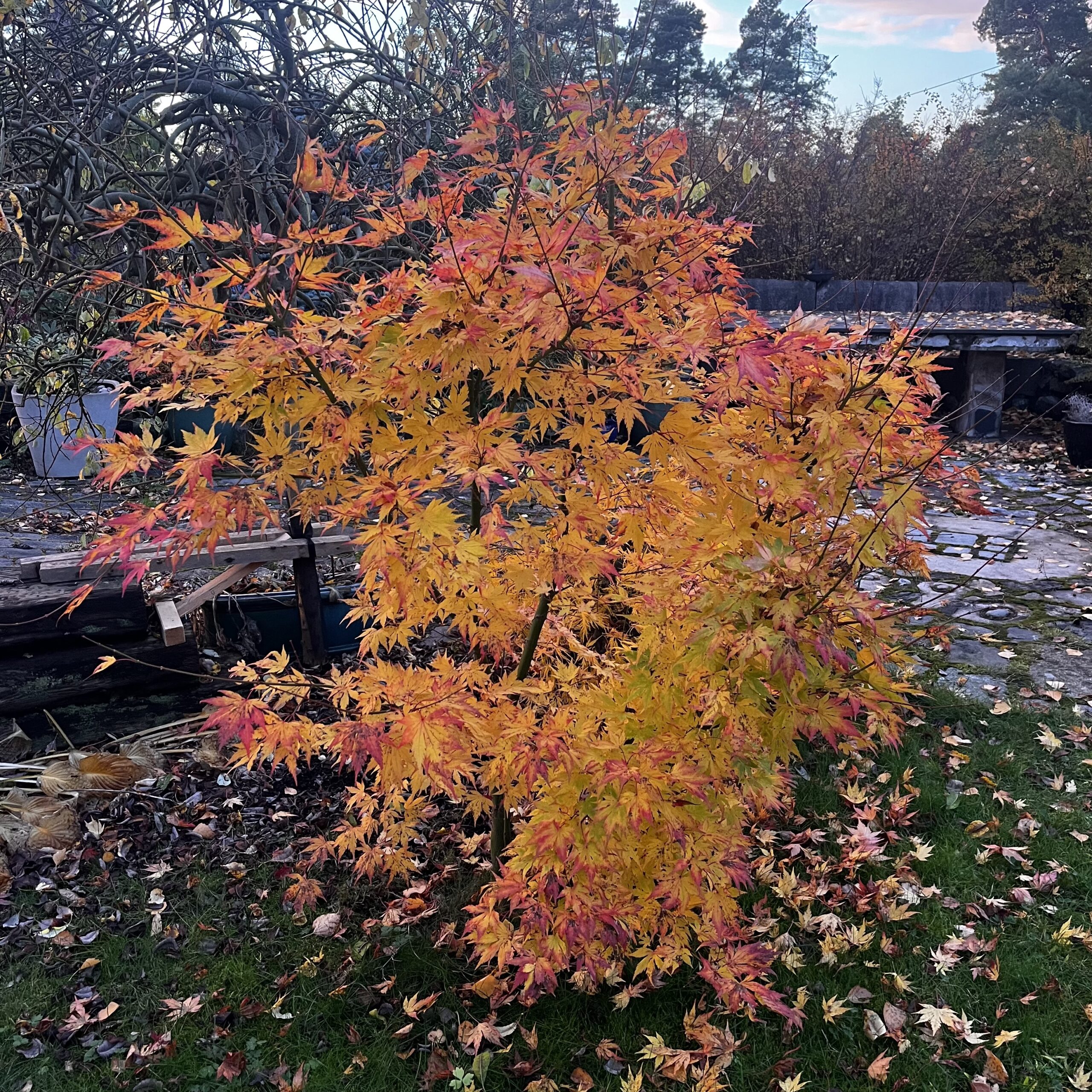 Acer palmatum dissectum flavescens) som døde den fjerde vinteren. Kanskje oppstammede er litt mer sarte, for det er den eneste viftelønnen jeg har mistet noen gang.