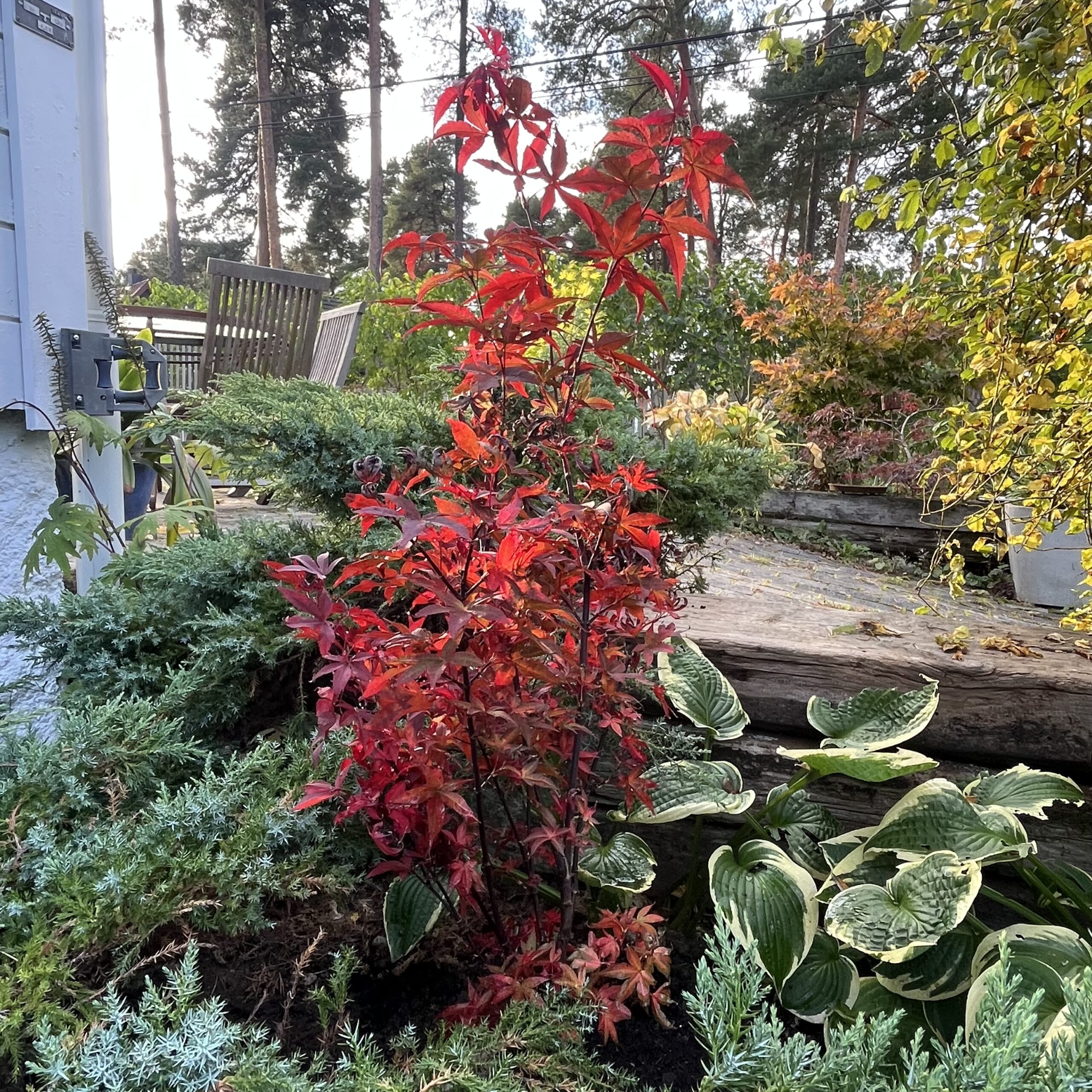 Jeg fikk plantet den 13. oktober i det gule bedet. Jeg synes den passer så fint i nærheten av de to andre småbladete lønnene, Shishio hime og Kiyohime.